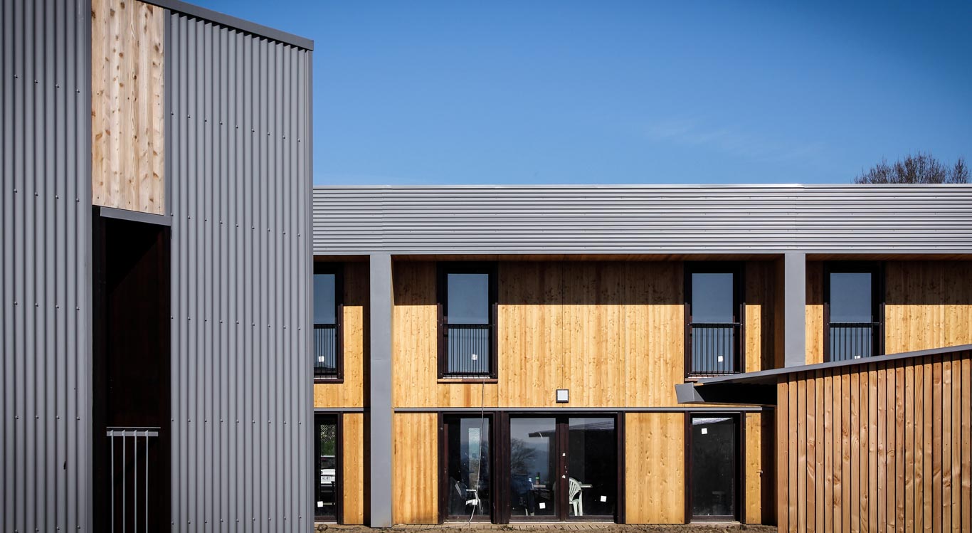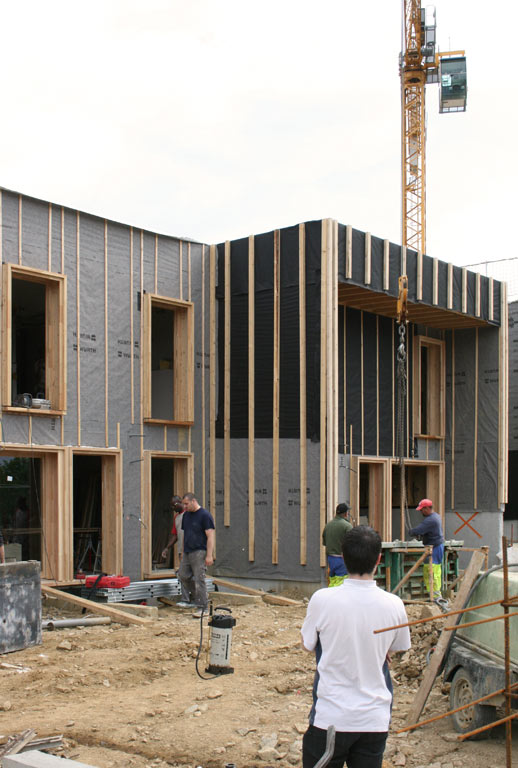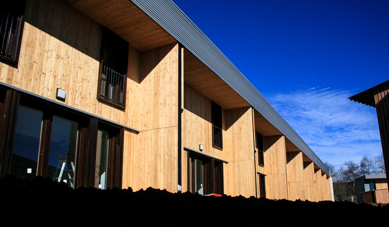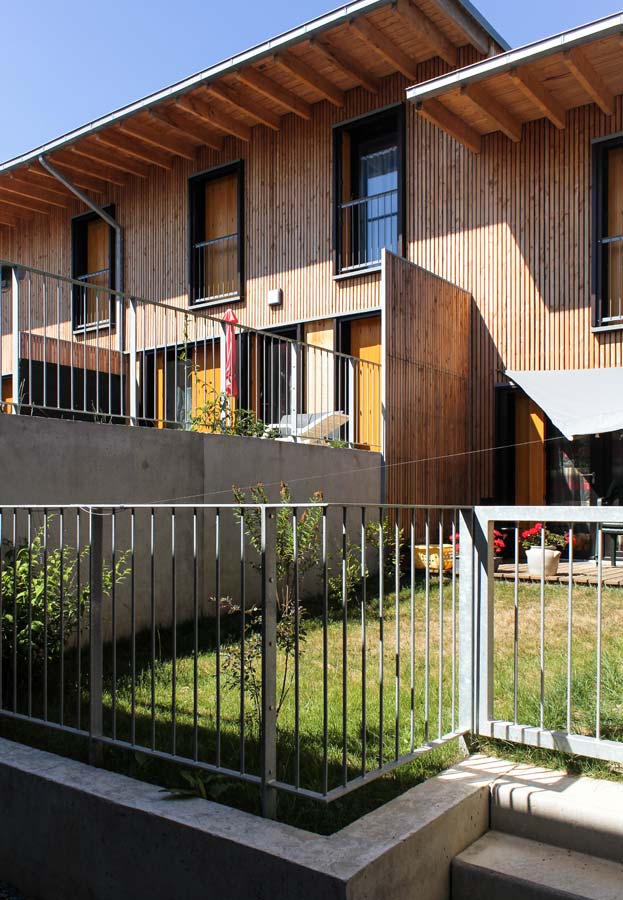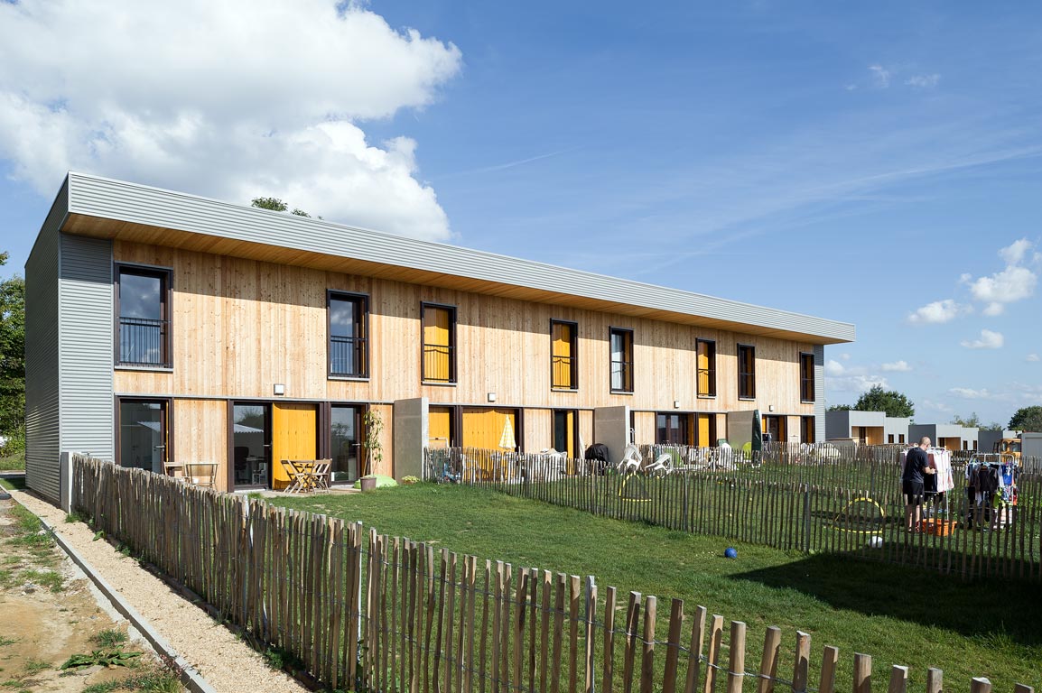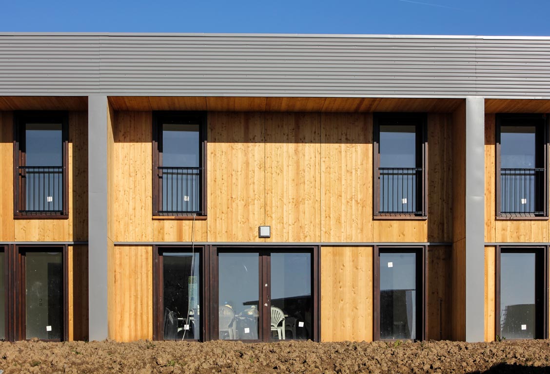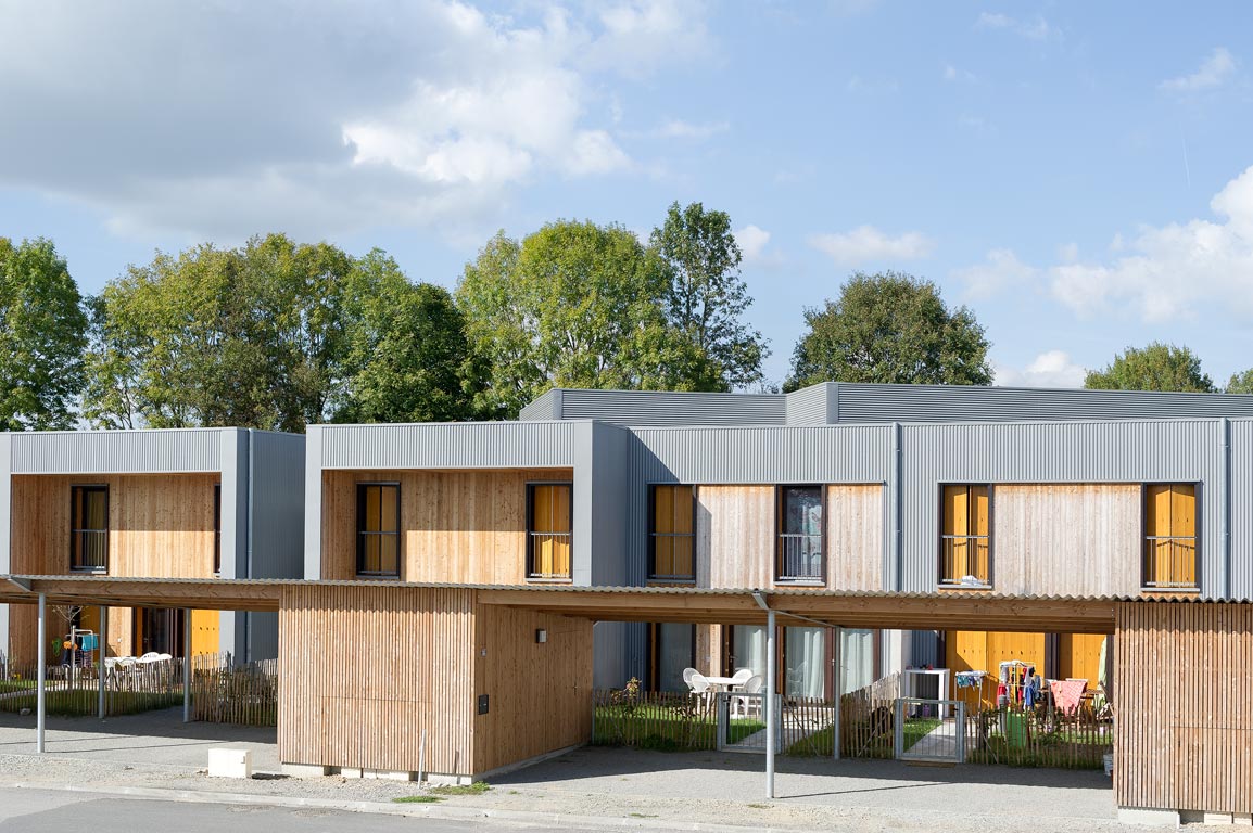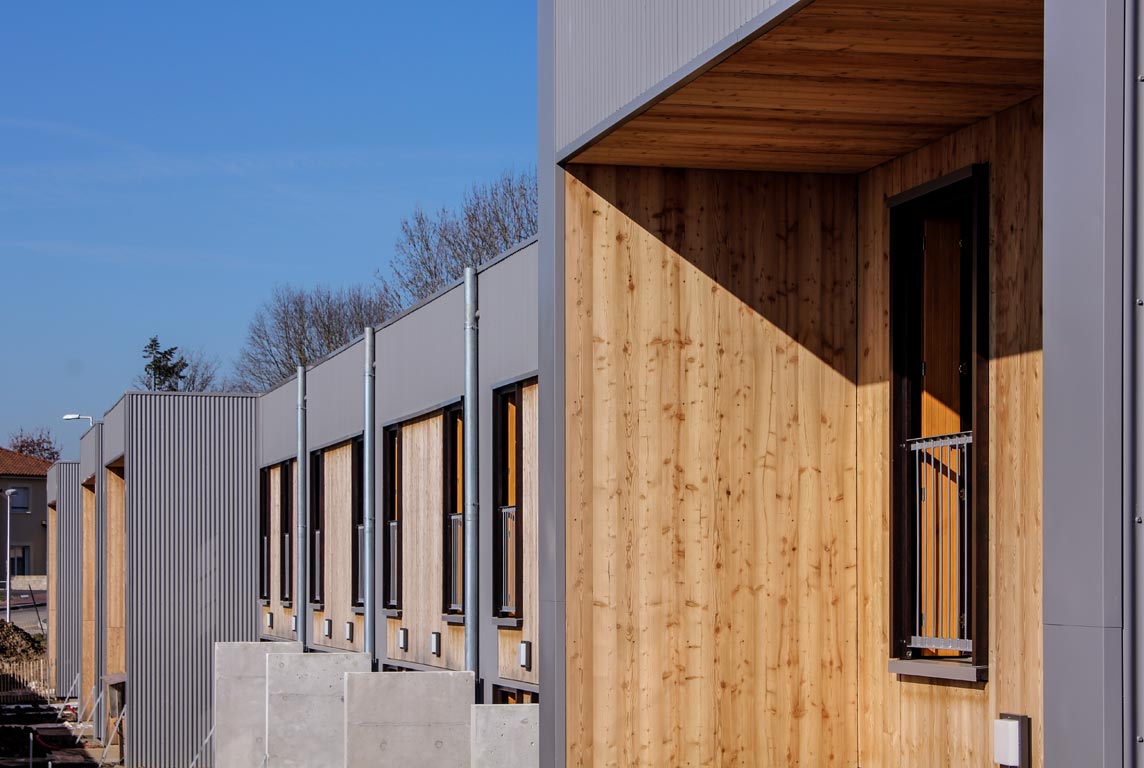 Du point de vue technologique, les habitations sont réalisées en structure bois. Les murs de refend entre logements sont en béton armé pour apporter une inertie thermique aux constructions légères tout en garantissant un excellent niveau de confort acoustique entre logements. Les toitures terrasses végétalisées apportent un supplément d’inertie et augmentent significativement le confort d’été des habitations.