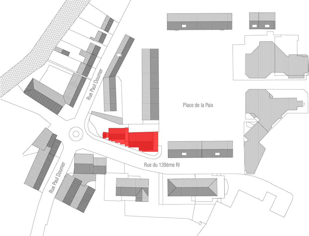 Lieu : 26, rue du 139ème R.I. 15000 Aurillac Maître d’ouvrage : Direction départementale de l'agriculture Maître d’oeuvre : Atelier d'architecture Simon Teyssou IGETEC (bet fluide), MANGANELLI (ingénierie audio-visuelle Responsable de projet : Anne Poulhès Entreprises : SAS SOULIER, Gros-œuvre / BOUYSSE, Menuiseries intérieures bois LAVERGNE, Chauffage - eau chaude / FORCLUM, Électricité / COSTES, Serrurerie SOL 15000 SARL, Sols souples / LAUMOND , Meunuiseries extérieures alu - serrurerie ROUSSILHE DECORATION , Mobilier et stores bois / LAVERGNE , Nettoyage BOIS & PAYSAGE , Travaux paysagers. Surface SHON : 224.55 m² Calendrier : 1 avril 2010 Coût des travaux : 229 738 € HT