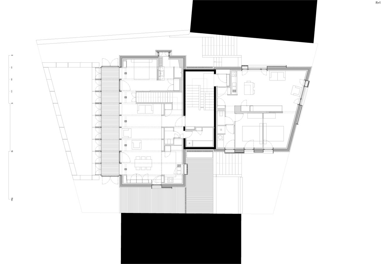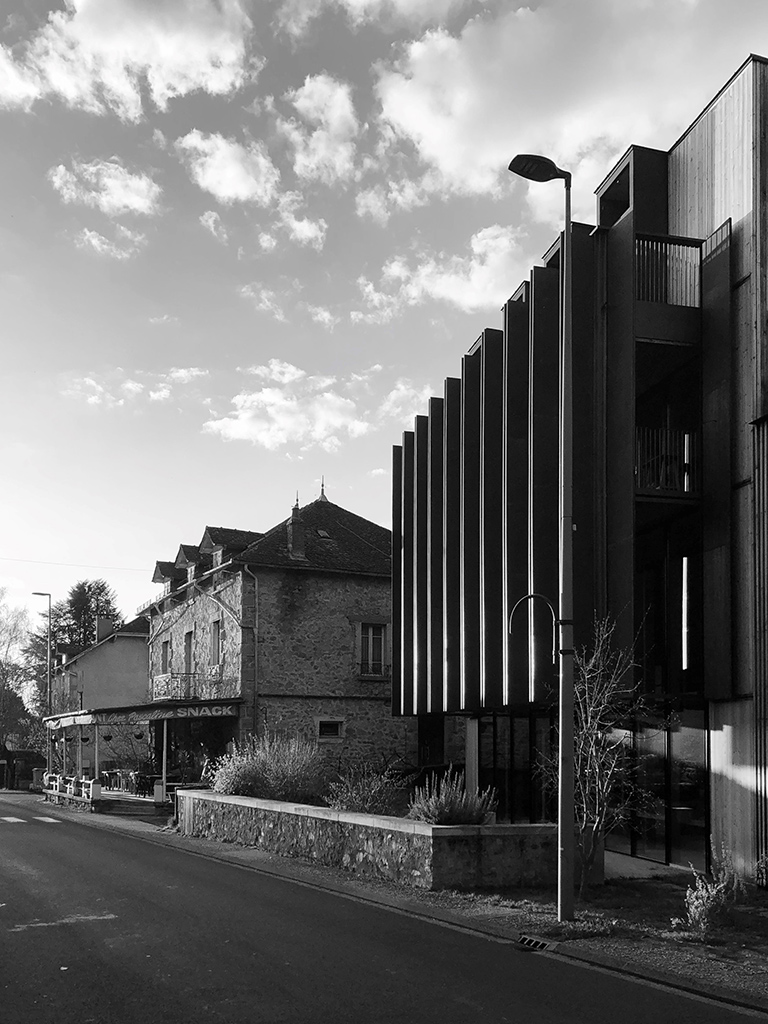 Situé au Rouget, l’immeuble comprend un atelier d’architecture et trois logements. Il est implanté sur une parcelle libre, le long de l’avenue du 15 Septembre.