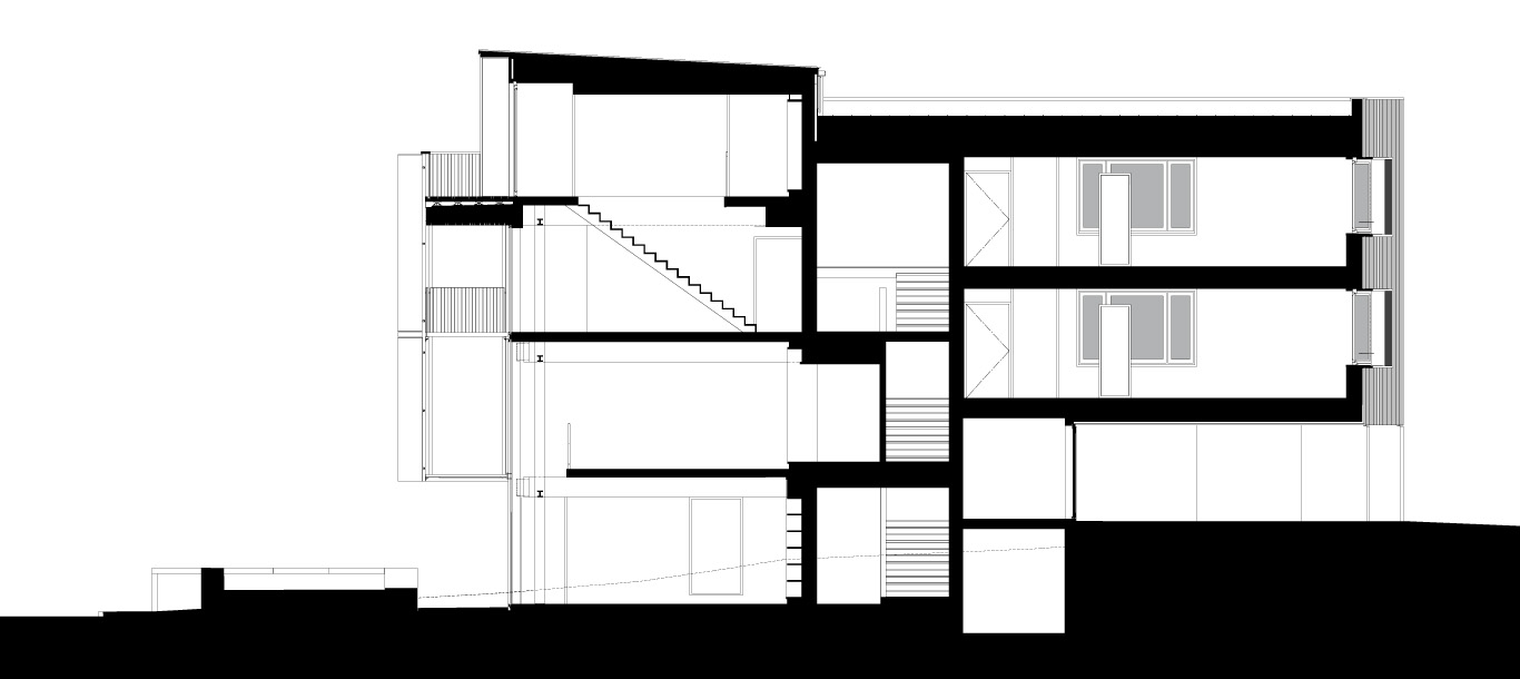 Le projet est conçu selon des principes climatiques et thermiques simples : hiérarchie des percements, rez-de-jardin enterré au nord, compacité et densité. Le confort thermique est garanti par la présence de masses en béton et de chapes rapportées en ciment, exploitées pour leur inertie. Entièrement vitrée pour capter le rayonnement solaire, la façade sud se dédouble pour créer des interstices, convertis en espaces intermédiaires privilégiés. Au rez-de-jardin, un espace en double hauteur, contenu entre la façade rideau en verre et les volets suspendus à une structure métallique déportée, qualifie le parcours entre intérieur et extérieur et caractérise le seuil. Au deuxième étage, une loggia prolonge les espaces intérieurs du duplex. Au troisième et dernier étage, le toit-terrasse de la loggia devient un balcon sur le paysage lointain de la Châtaigneraie.