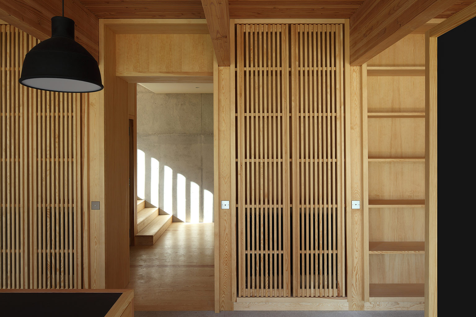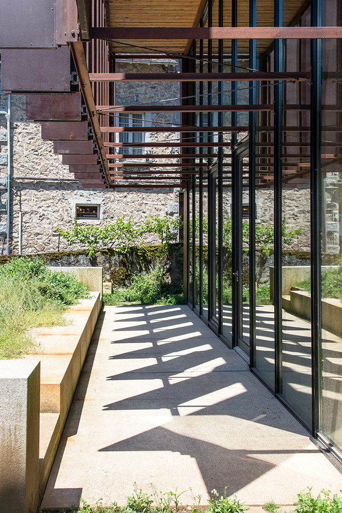 Le choix du matériau principal de construction de l’édifice raconte, à travers l’exploitation de ses matières premières, l’évolution et la transformation du paysage de la Châtaigneraie au cours du XXe siècle. En utilisant le bois provenant de la coupe d’éclaircie d’une forêt familiale plantée de résineux au cours des années 1970 dans une commune voisine du Rouget, le projet assume que l’édifice soit essentiellement construit avec une essence de bois – ici le douglas – dont les forêts ont considérablement modifié l’agriculture, l’identité des paysages et la biodiversité.