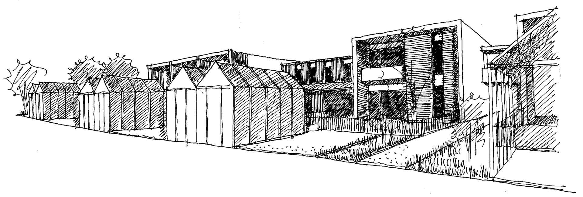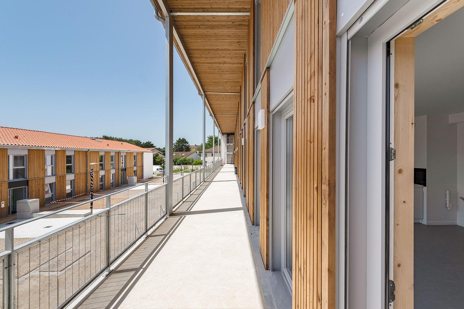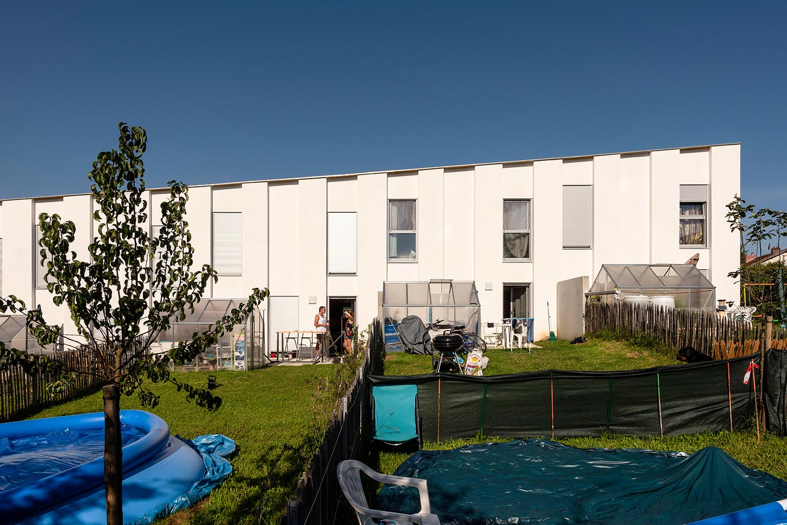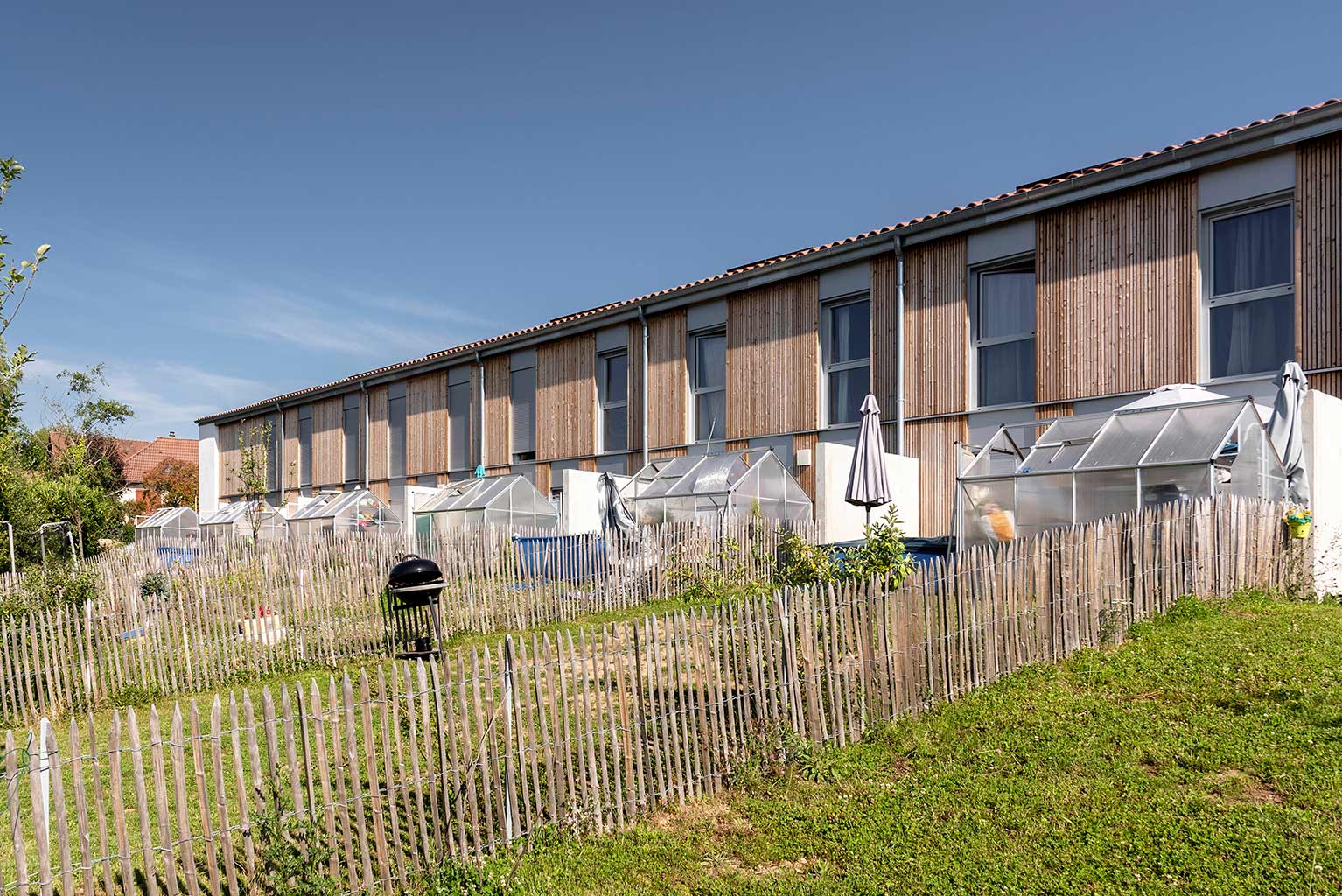 Les deux immeubles du milieu proposent des logements intergénérationnels et accueillent, au RDC, des couples de personnes âgées dont l’un des membres présente des troubles de la maladie d’Alzheimer. Appartenant à la Mutualité Française Limousine, la maison de retraite contiguë propose un service d’accompagnement de ces personnes à domicile.