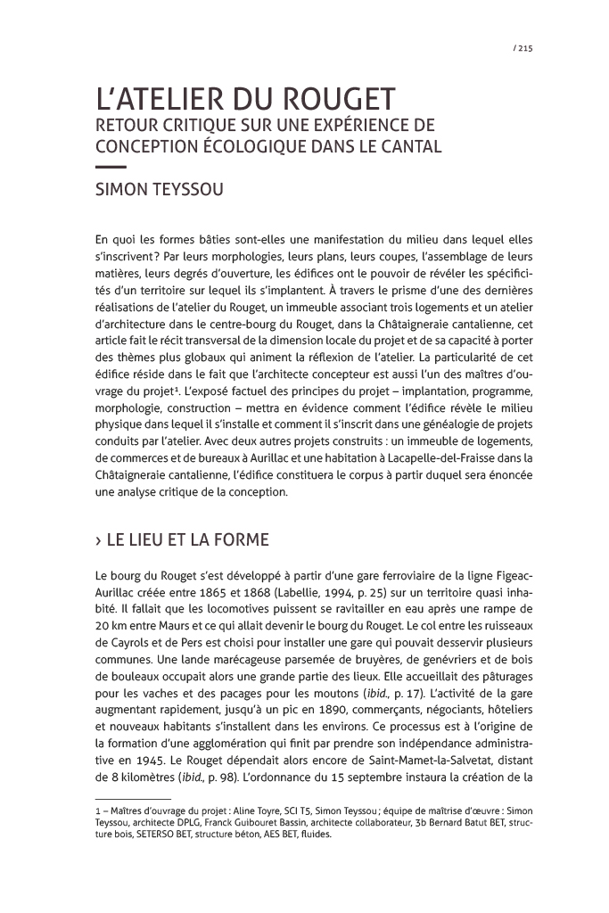 24 novembre 2016 Dans Écrits, Médias Catégories : Atelier, Chaliers, Vialenc ERPS 6 – 2016 Contribution de Simon Teyssou au 6ème volume de Espace Rural Projet Spatial (ERPS) Ruralités et Métropolisation « L’Atelier du Rouget : Retour critique sur une expérience de conception écologique dans le Cantal » Catégories : AtelierChaliersVialenc