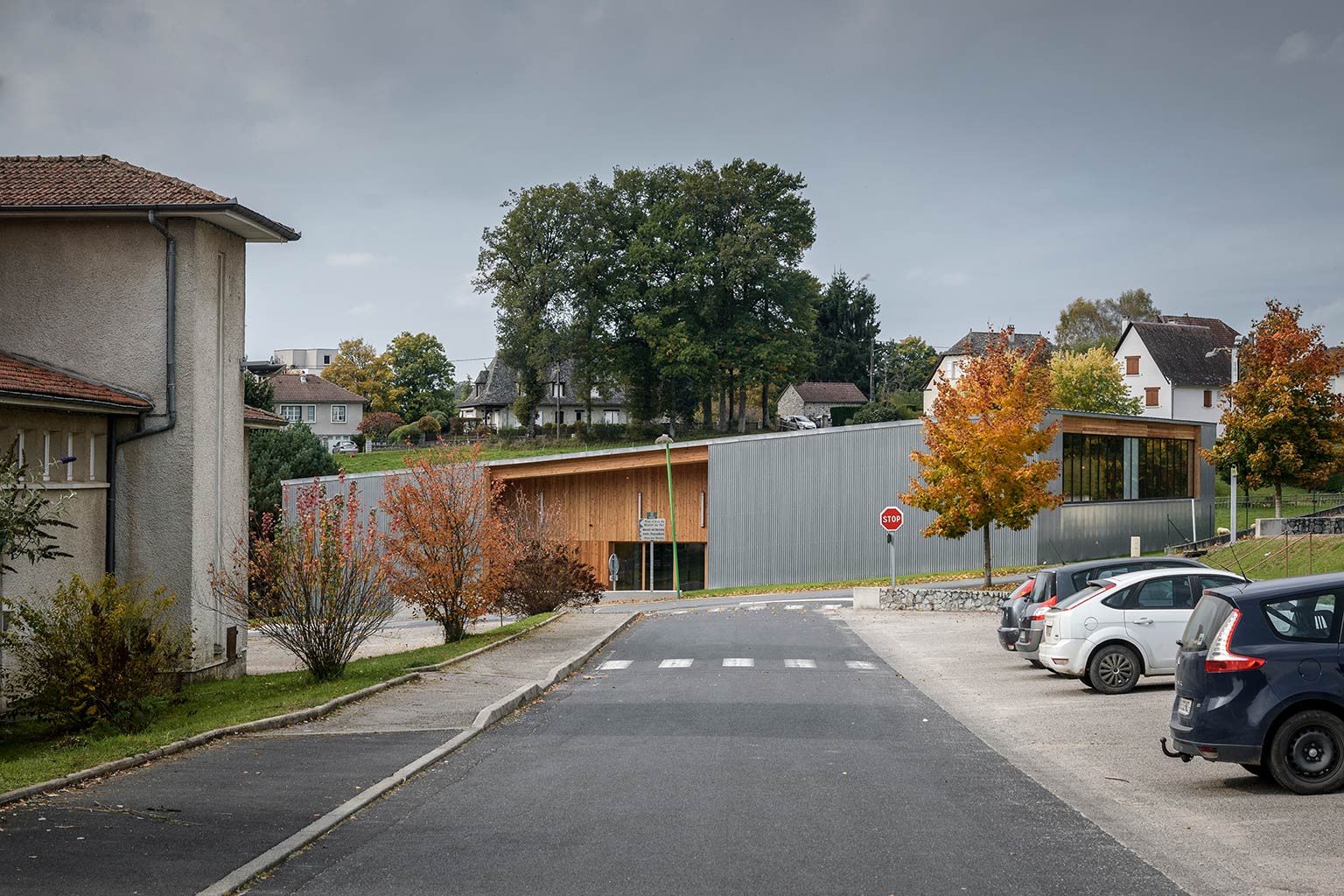 A proximité de la mairie, de l’église, de l’école et du foirail réaménagé, ce nouvel équipement conforte la figure du parc du Rouget.