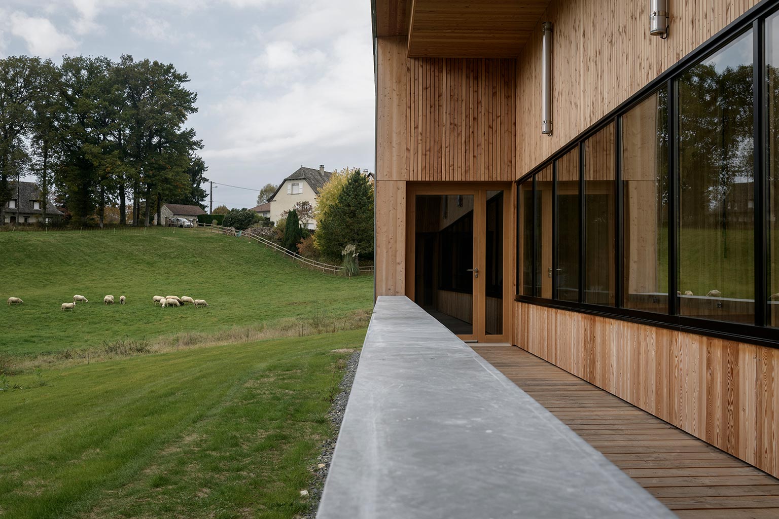 Lieu : 15290, Le Rouget Maître d’ouvrage : Communauté de communes de la Châtaigneraie cantalienne + Commune du Rouget-Pers Maître d’oeuvre : - Atelier du Rouget Simon Teyssou & associés (mandataire) - IGETEC (BET TCE + OPC) - BET 3B (BET structure bois) - SIGMA (BET acoustique) Suivi des études : Samuel Ducloux Suivi du chantier : Lisiane Chanut - Simon Teyssou Surfaces: 673m² Calendrier : Livré en 2021 Coût des travaux : 1 450 000 € HT Entreprises : Terrassement VRD : Claude Meallet / Gros-œuvre : Costa Ferreira Charpente bois - Ossature et Menuiseries extérieures : Bouysse Menuiserie Couverture - Bardage Zinc : Djilali / Etanchéité : Auritoit Serrurerie : C2M / Menuiserie intérieure - Mobilier: Créabois Cloisons - plafonds - peinture : Cambon / Carrelage - Faïences : Brunhes Jammes Sols souples: Sol 15000 / Chauffage - Plomberie - Sanitaires - Ventilation : Lavergne Electricité - Courants forts - faibles : Longuecamp