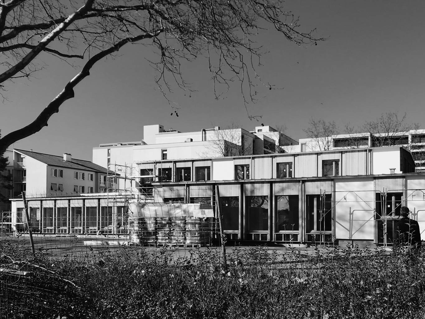 Le projet compte aussi une extension abritant une salle de musiques actuelles. Avec l’ancienne école primaire occupant le Sud du parc de Jara, cet espace culturel fabrique une cour permettant aux enfants de bénéficier d’un espace extérieur protégé. L’ancienne école maternelle accueille, quant à elle, plusieurs salles de danse au rez-de-chaussée et des bureaux associatifs à l’étage.
