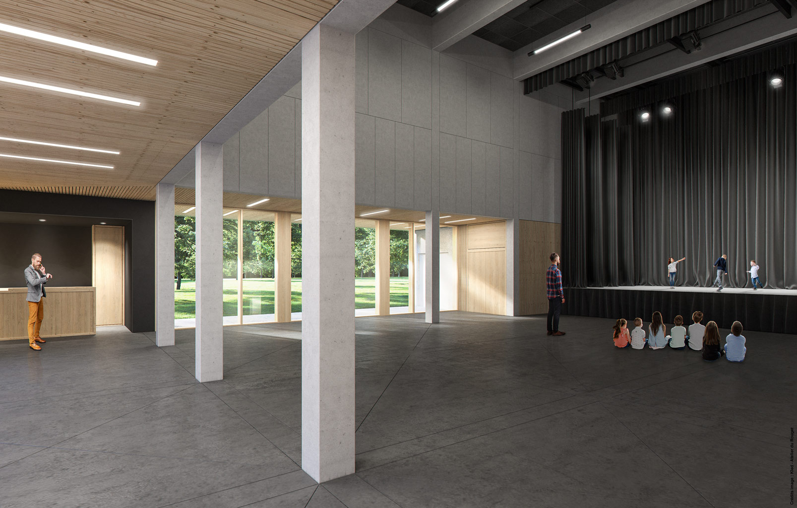 Lieu : Centre Social de Marmiers, 15000 Aurillac Maître d’ouvrage : Mairie d'Aurillac Maître d’oeuvre : - Atelier du Rouget Simon Teyssou & associés / mandataire - IGETEC (BET TCE) - SIGMA (BET acoustique) - FTI (scénographe) Surfaces: 3 329m² Calendrier : Chantier en cours (livraison 2021) Estimation du coût des travaux : 5 566 000 € HT
