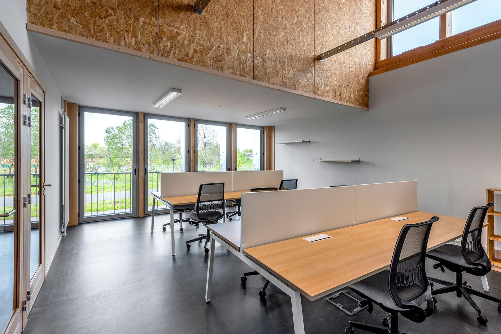 Par ailleurs, la toiture en sheds permet une optimisation de l’éclairage naturel des ateliers avec une lumière du Nord, tout en permettant une implantation optimale de panneaux photovoltaïques orientés au Sud.