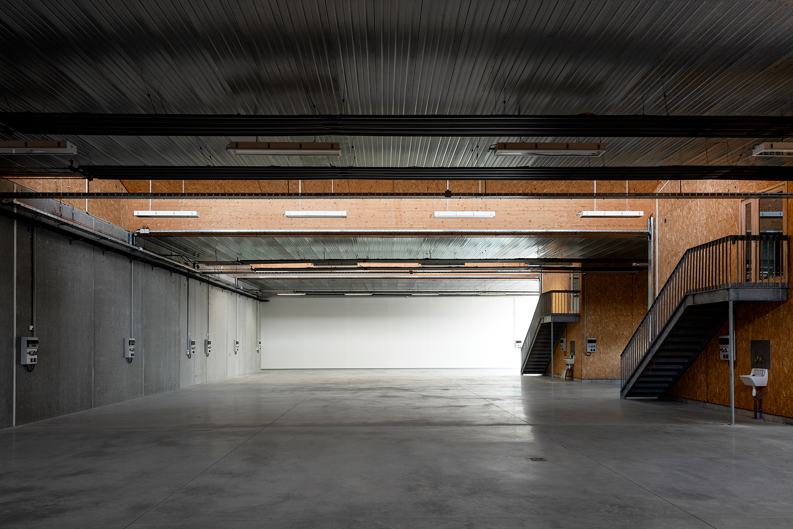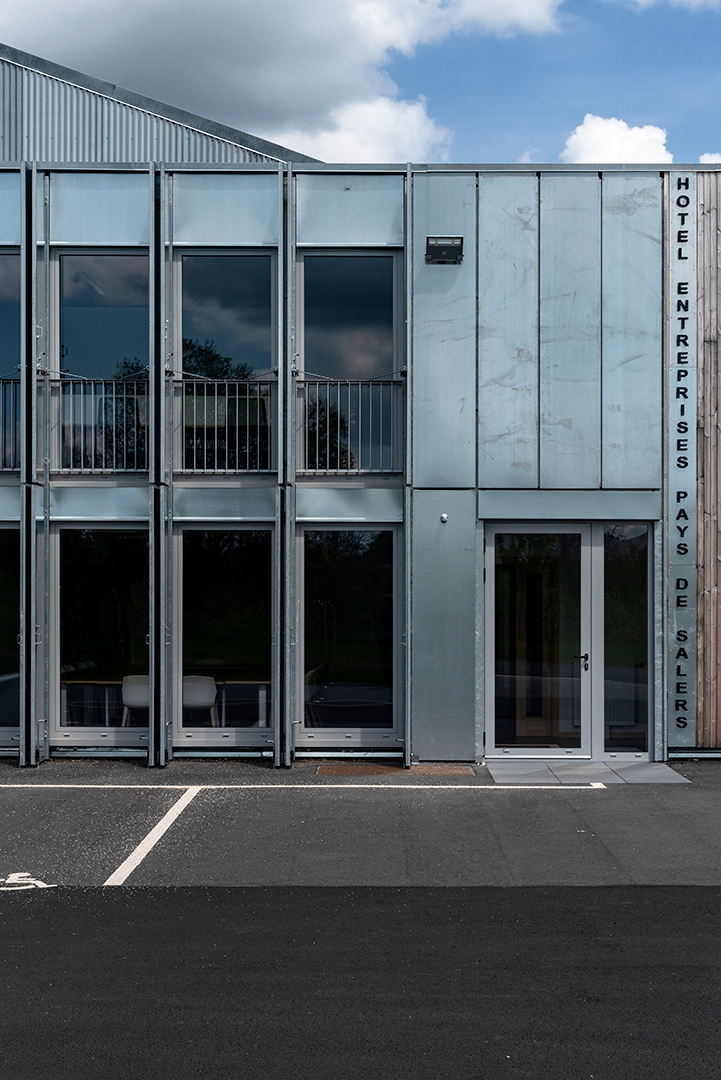 Ainsi, le bâtiment s’ouvre sur deux façades : au Sud les bureaux et à l’Ouest les ateliers. Ce parti pris permet de minimiser l’impact du bâtiment, en concentrant et en mutualisant les espaces manœuvrés devant les ateliers.