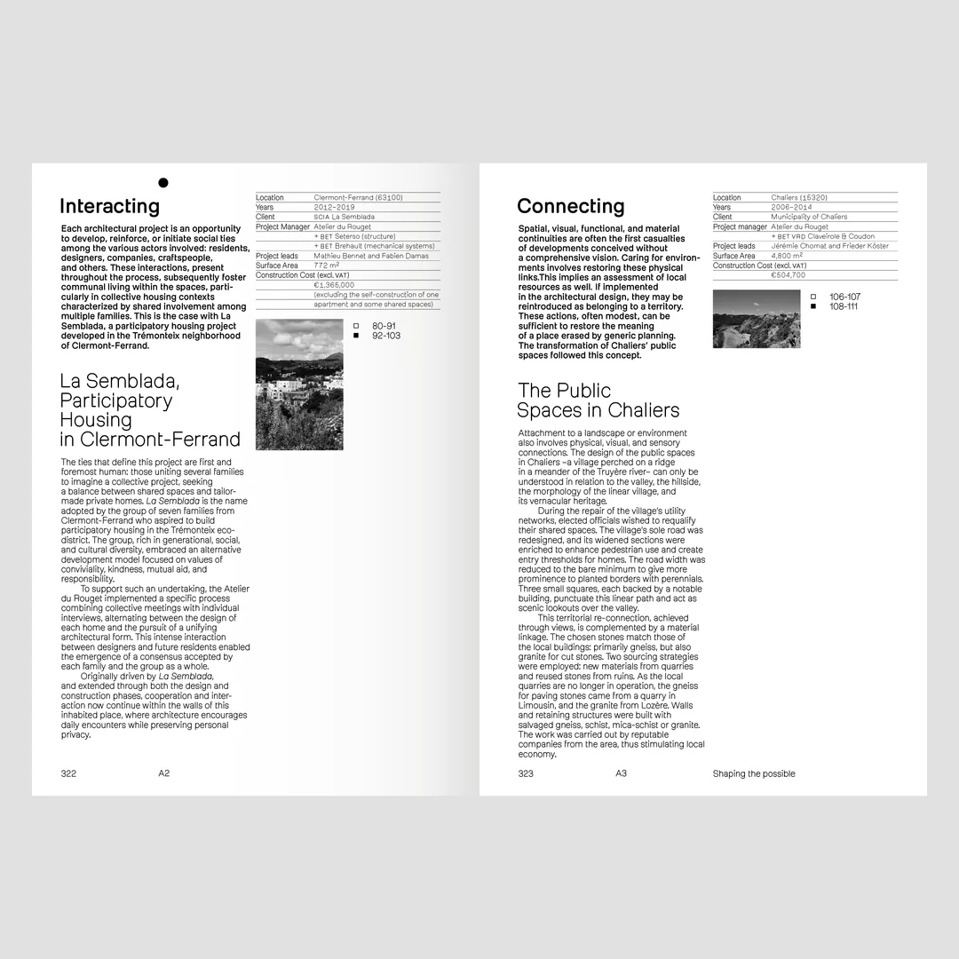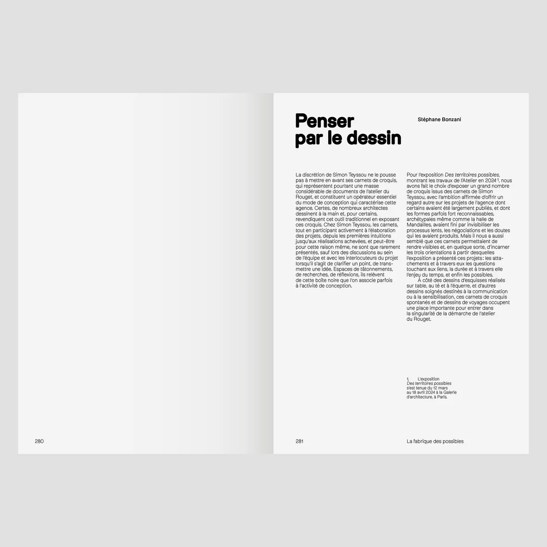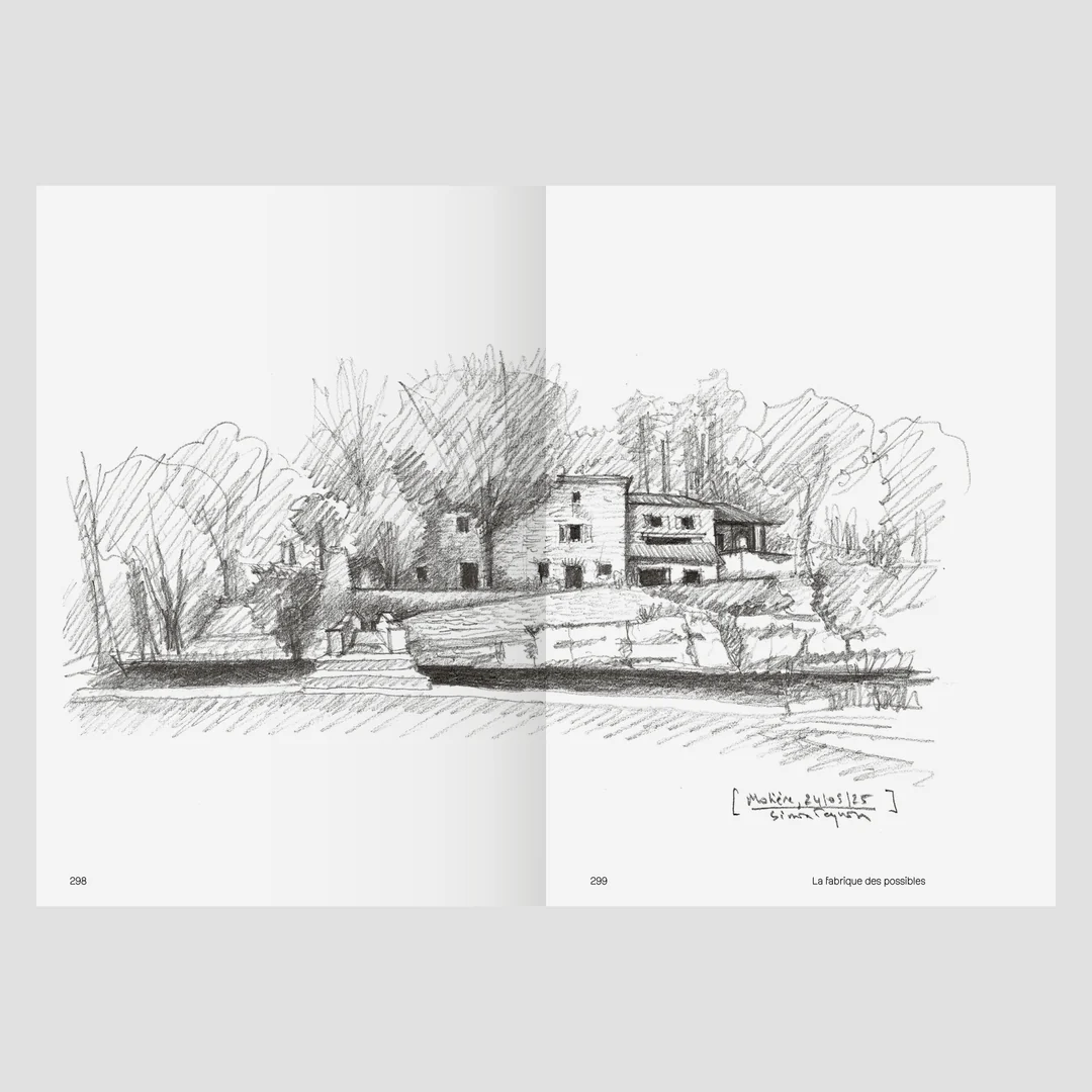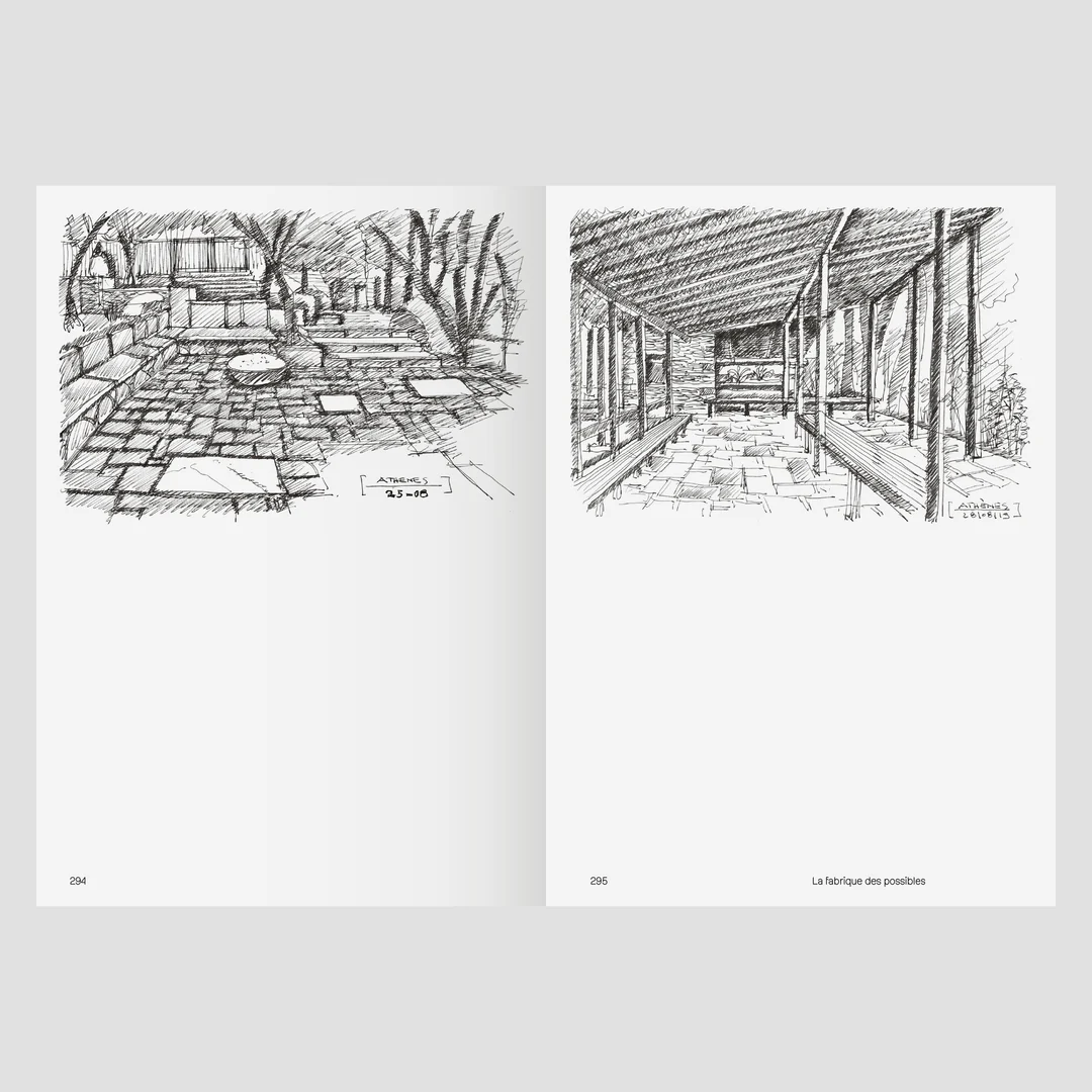Le livre présente cette démarche à travers une sélection de projets illustrés par les croquis des carnets de Simon Teyssou. Ces derniers mettent en lumière un processus de conception où le dessin joue un rôle exploratoire et inventif.