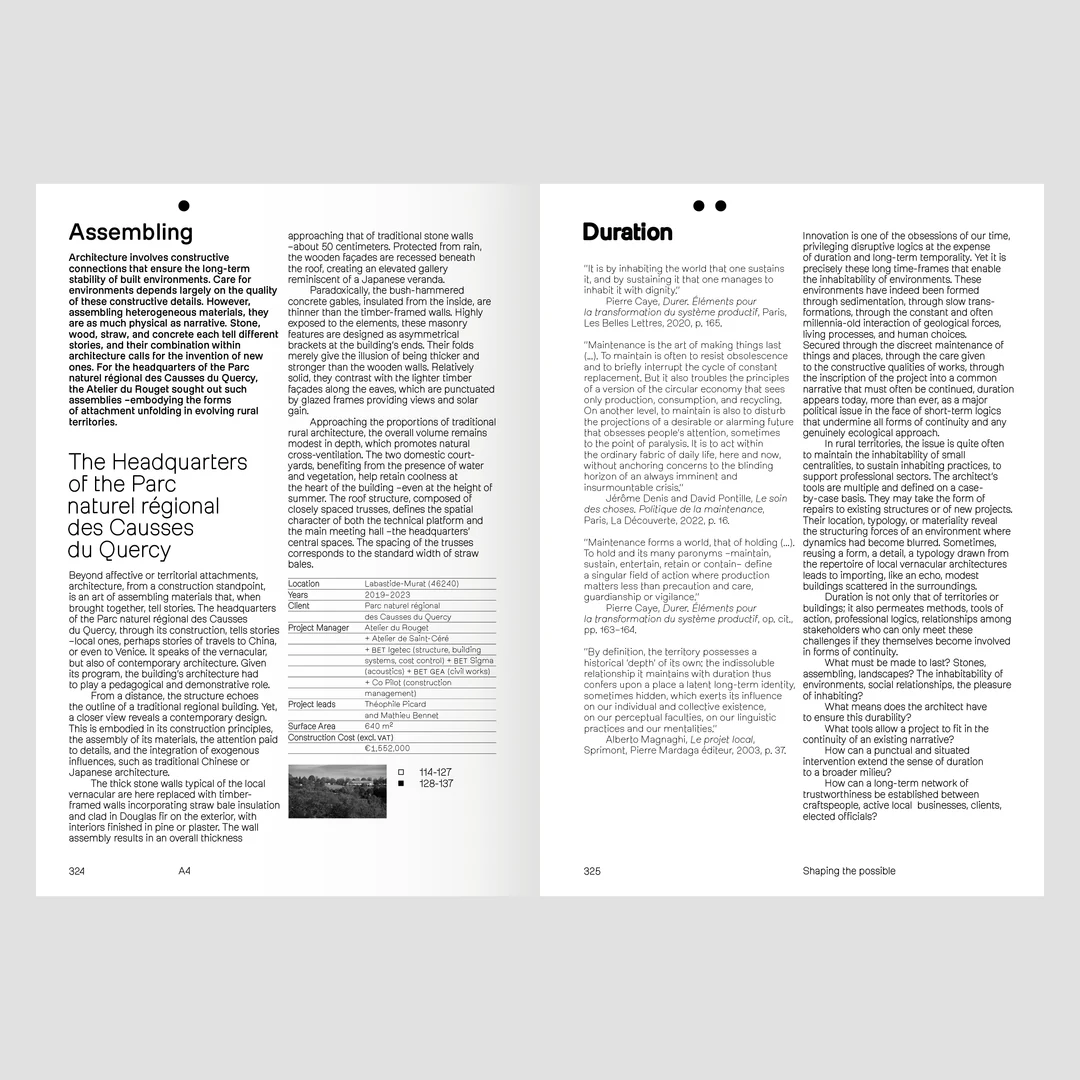 Depuis vingt ans, l’Atelier du Rouget, fondé par Simon Teyssou — récemment distingué par le Grand prix de l’Urbanisme et le Global Award for Sustainable Architecture —, développe une démarche patiente au cœur des territoires en marge et de la ruralité. Ses projets sont de natures et d’échelles multiples, à l’image de ces milieux habités, eux-mêmes extrêmement contrastés.