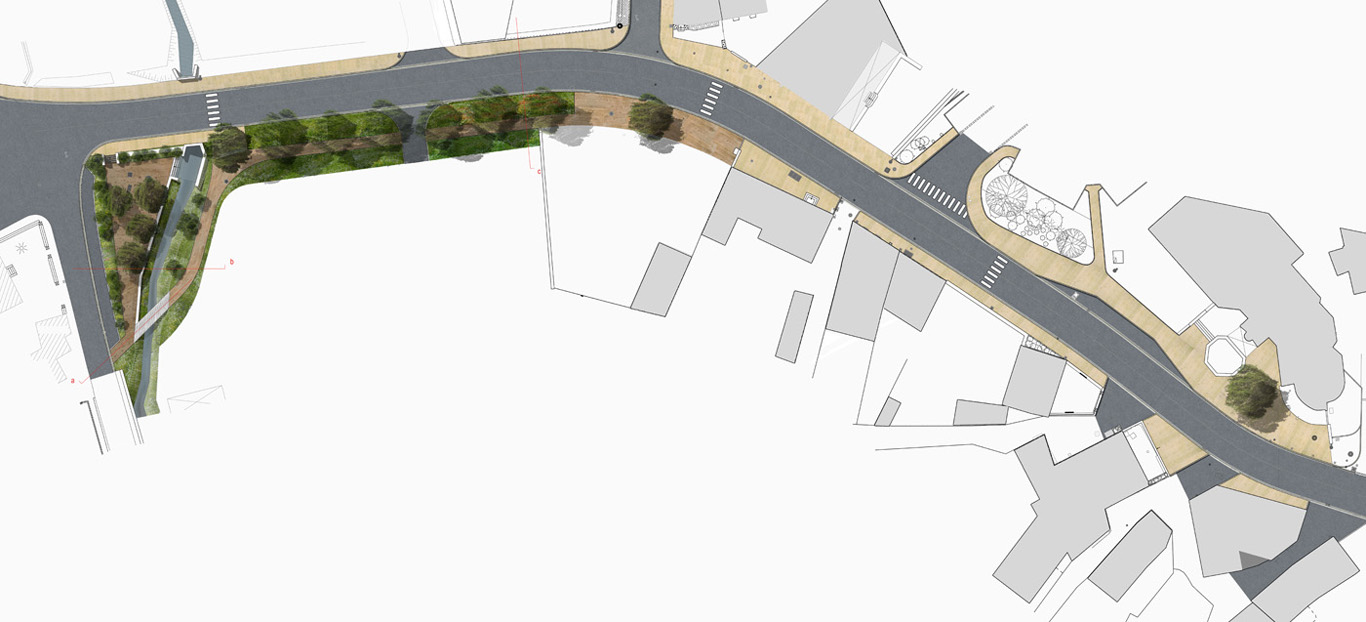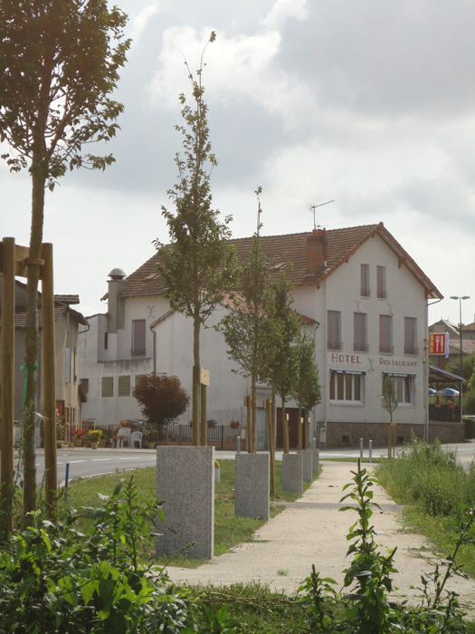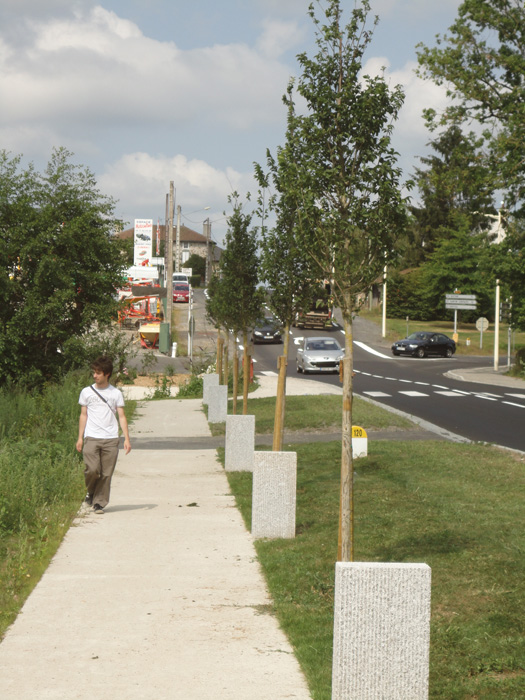 La commune de St Paul des Landes est traversée par l‘ancienne RN 120 , actuellement D 120. Réalisé à la suite d’un plan guide portant sur l’ensemble de la commune, le projet concerne plus spécifiquement la traverse du bourg et les abords de l’ancien lavoir en direction d’Argentat. Un cheminement latéral, en retrait de la route départementale, sécurise les piétons vis-à-vis de l’intense circulation routière. Ce chemin pédestre favorise les déplacements des habitants en mode doux, entre les services publics et les commerces du centre bourg d’une part, et les développements urbains récents d’autre part.