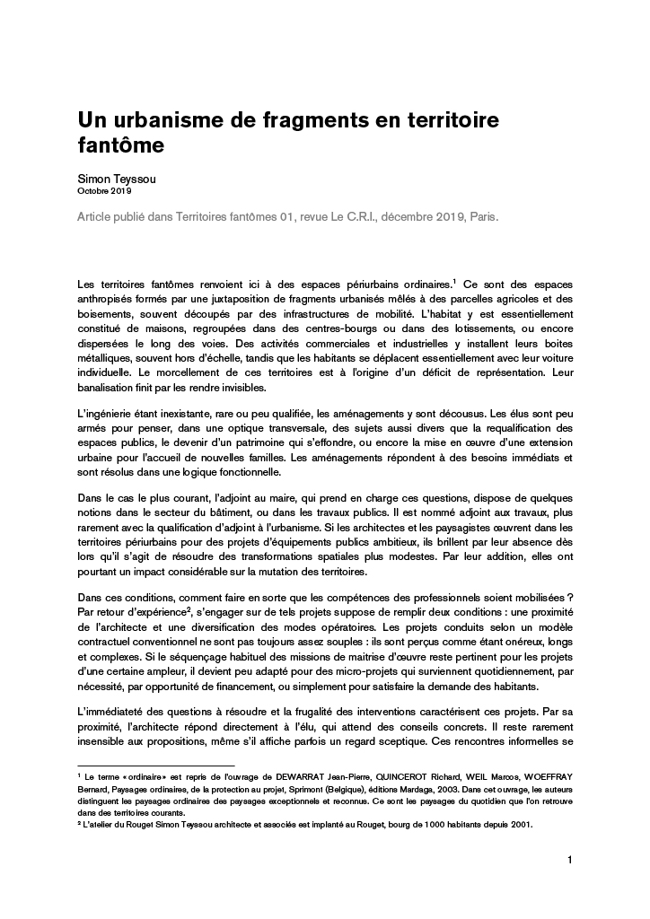 Article publié dans Territoires fantômes 01, revue Le C.R.I., décembre 2019, Paris.