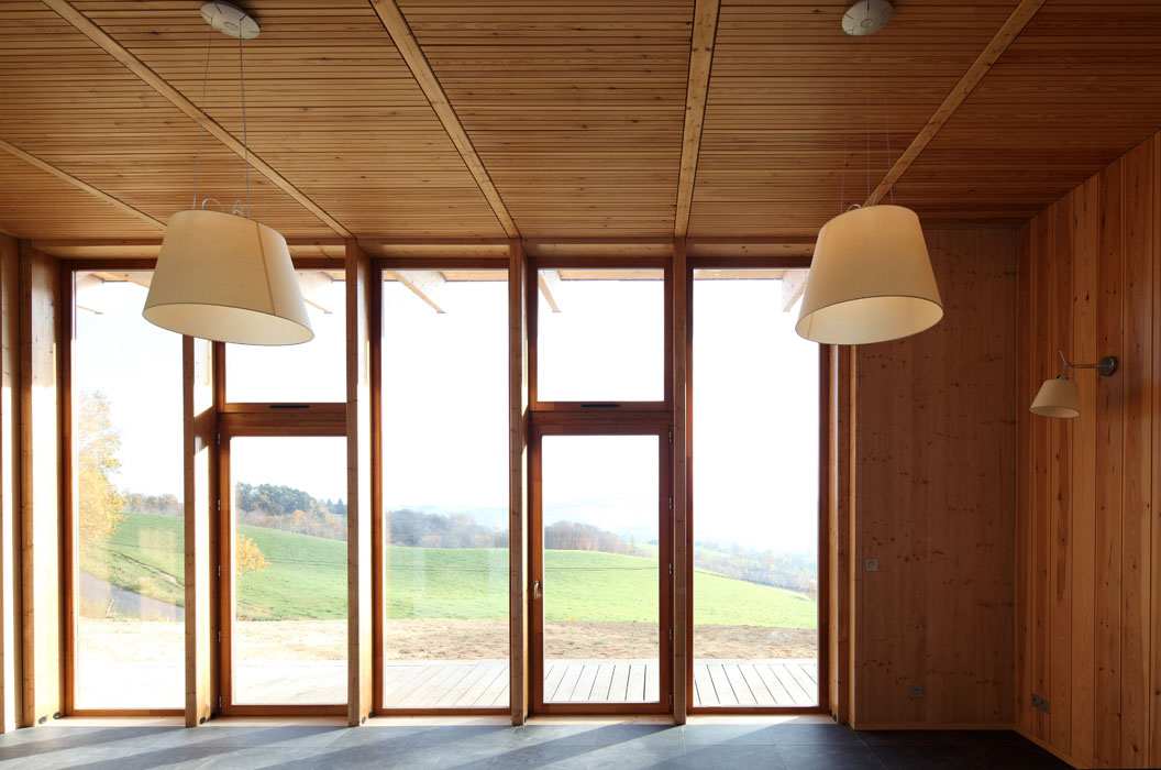 Lieu : Les fourmilières, 15120 Lacapelle Del Fraisse Maître d’ouvrage : Privée Maître d’oeuvre : Atelier d'architecture Simon Teyssou Responsable de projet : Mathieu Bennet Entreprises : PUECH , Terrassement - menuiseries intérieures bois / MEYNIEL , Gros-oeuvre BOUYSSE , Charpente - menuiseries extérieures bois / CROUZET SANCHEZ , Couverture - étanchéité VEINAZES DECO , Cloisons doublages - peinture / LEYBROS , Isolation SEMETE , Plomberie / LONGUECAMP , Electricité / CUMINGE , Carrelage Surface SHON : 130 m² Calendrier : 2009-2011 Crédit images : Christophe Camus, L'atelier Prix : Prix départemental - Palmarès régional Valeurs d'exemples 2013 Prix national de la construction bois 2013 Publications : Valeurs d'exemples, palmarès régional 2013 Guide sur les résineux de France