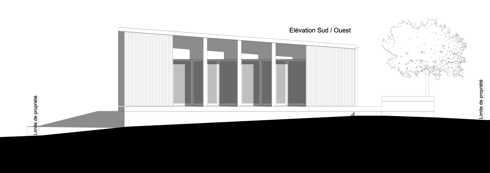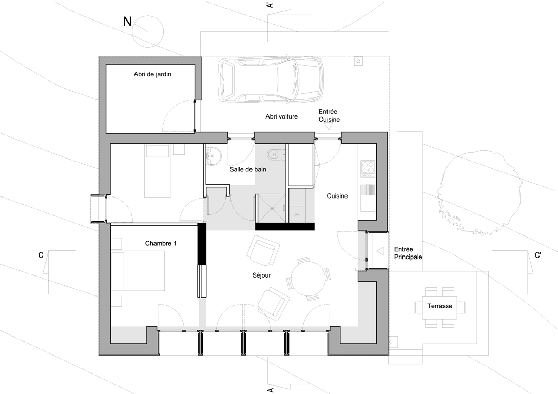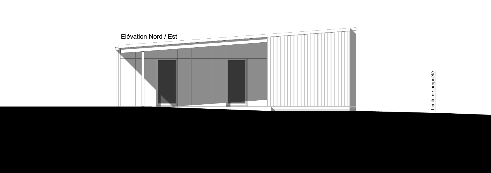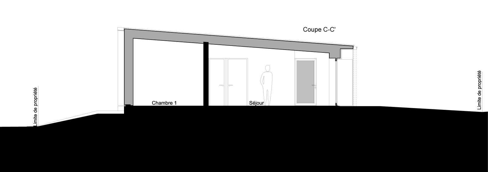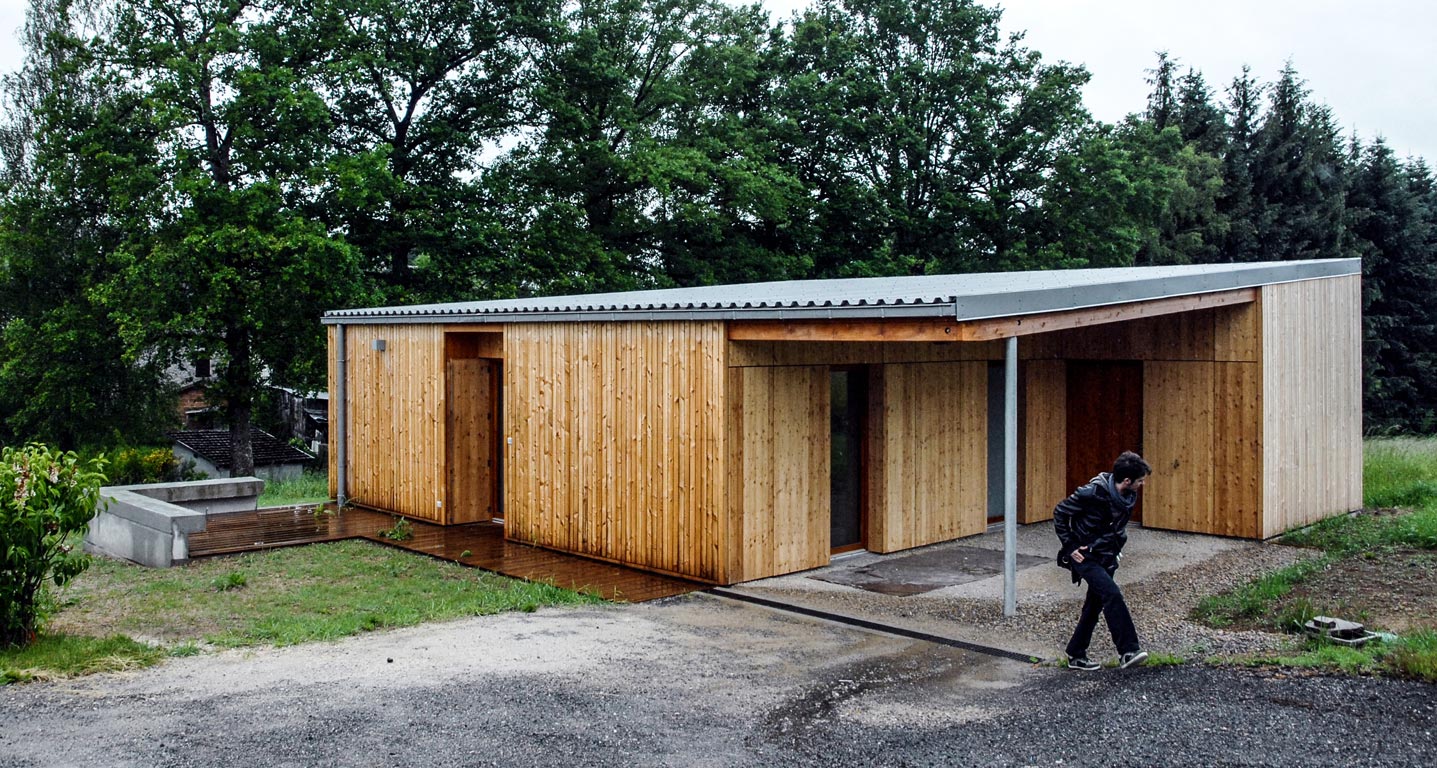 Petite habitation comprenant deux chambres, cette habitation résulte d’une commande privée à caractère social puisqu’il s’agit de rapprocher un parent âgé de la famille. Elle est l’expression d’une question récurrente dans l’architecture domestique. Il s’agit de produire les conditions d’une habitation agréable et qualitative à moindre coût.