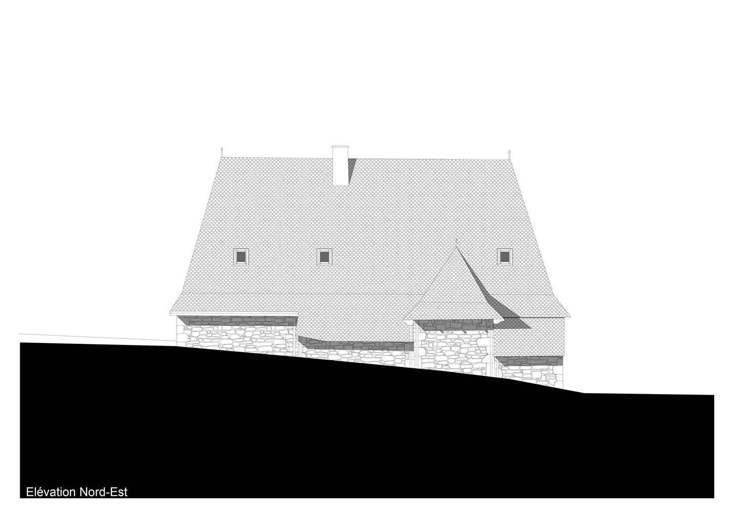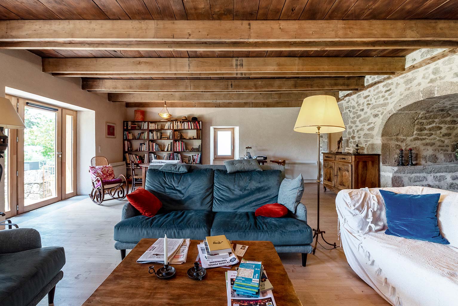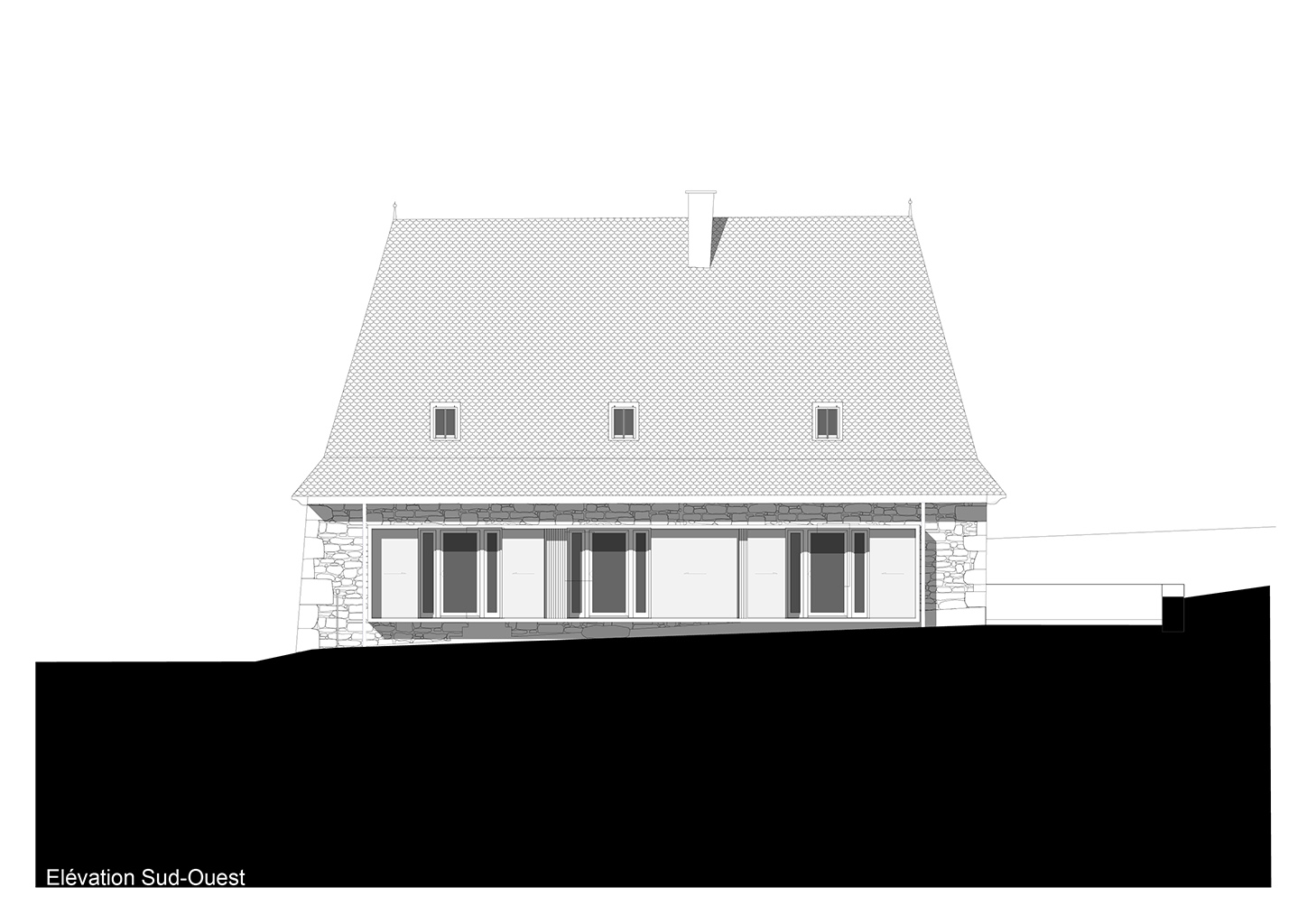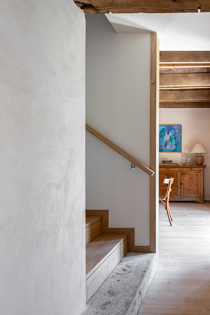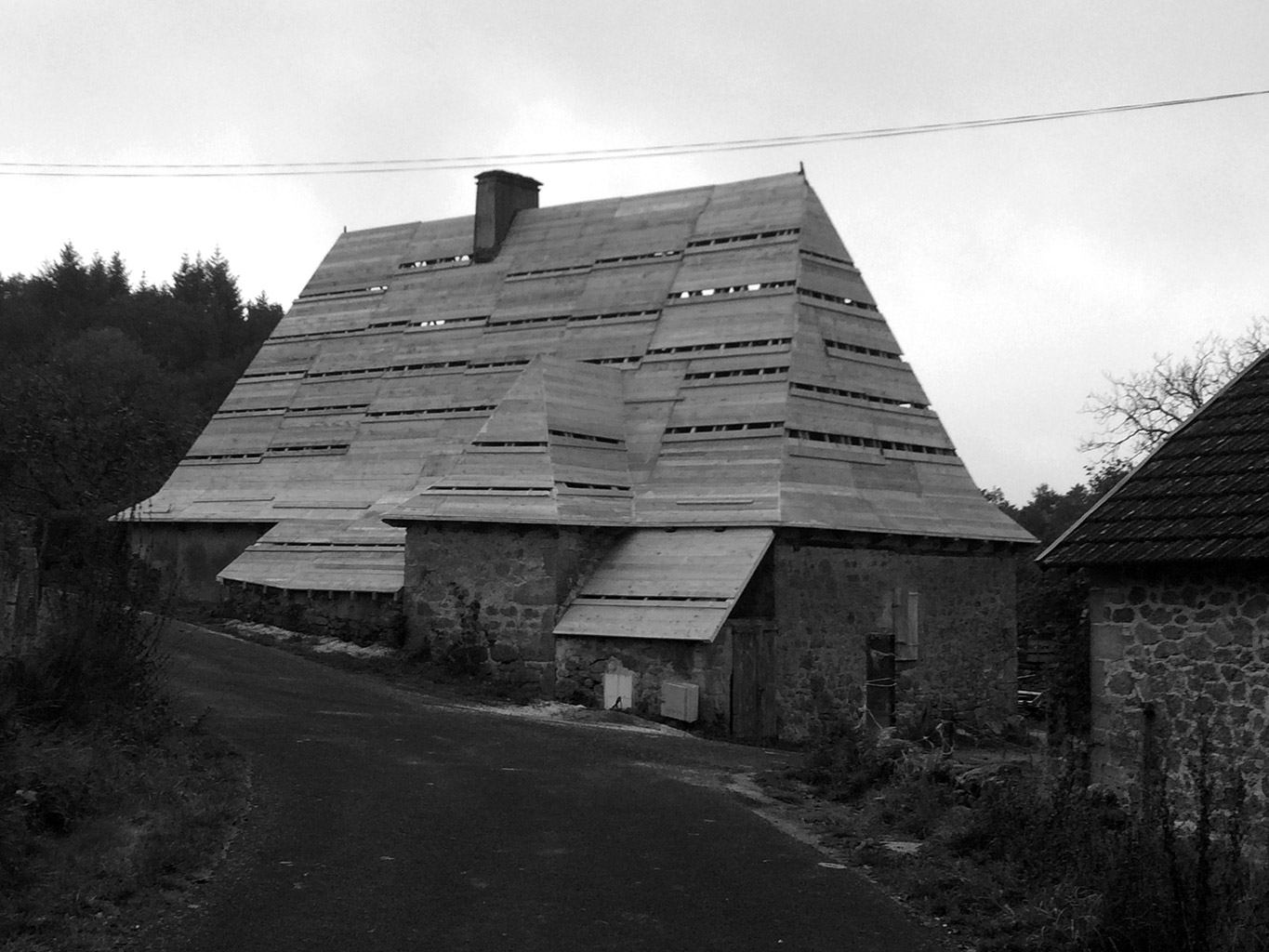 Le projet consiste en la réhabilitation d’une maison traditionnelle de la Chataigneraie Cantalienne. Dépourvue de tout confort, la maison a fait l’objet d’une transformation lourde. La toiture traditionnelle en lauzes de schiste a été entièrement déposée et refaite selon les savoir-faire locaux, encore très vivaces. Plutôt que de percer le toit pour trouver de nouveaux apports en lumière naturelle, nous avons choisi de percer la façade sud généreusement. Un cadre en acier recompose la façade et regroupe en un seul dispositif plusieurs baies ainsi que des volets coulissants en mélèze. A l’intérieur, les planchers en bois ont été consolidés selon un assemblage moisé de solives en chêne. Les anciens parquets en chêne ont été conservés en place et constituent aujourd’hui le plafond des pièces du rez-de-chaussée. Les nouveaux parquets sur lambourdes ont été réalisé en châtaignier, essence locale par excellence. Une isolation en ouate de cellulose, interposée entre les deux parquets, améliore la performance acoustique entre les niveaux. Les murs intérieurs ont été doublé avec un enduit épais en chanvre et chaux. A l’extérieur, les façades en moellons de granite ont été rejointoyées avec un enduit traditionnel à la chaux de Saint Astier. Ainsi la perspirance des murs est-elle garantie. La charpente existante et les cloisons sont isolés avec des isolants biosourcés en fibre de bois et chanvre. Les techniques traditionnelles et alternatives ont été mises au service des enjeux contemporains : performance de l’enveloppe, confort thermique et hygrométrique, confort visuel, valorisation des ressources et des savoir-faire locaux, logiques de circuits-courts.