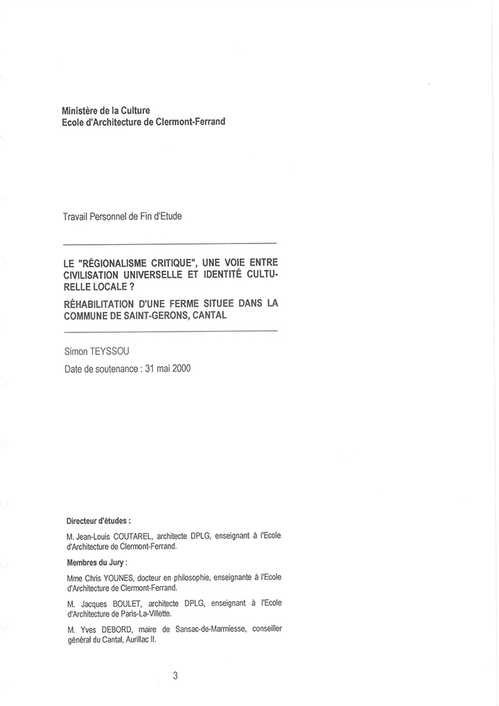Travail Personnel de Fin d’Étude | Simon Teyssou | 31 mai 2000