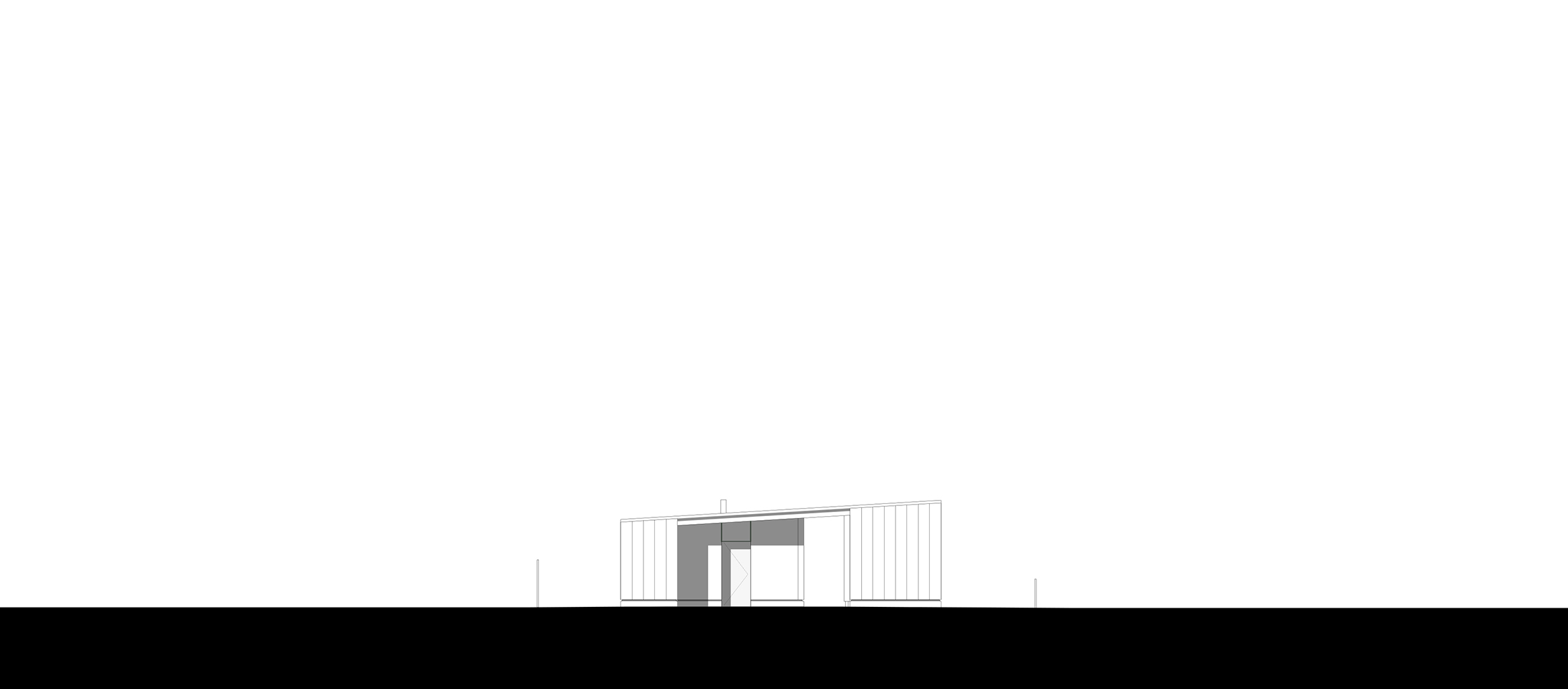Les portiques en bois lamellé-collé sont en douglas. Les murs à ossature bois sont en pin originaire du Massif Central de section 45 x 180mm. L’isolation primaire de 180mm s’insère entre les montants des murs. Une contre-isolation de 90mm est rajoutée à l’intérieur. Un pare-vapeur indépendant est interposé entre les deux isolants. Il s’agit ici de soigner la performance thermique de l’enveloppe. Toutes les menuiseries extérieures sont réalisées à partir de carrelets bois contrecollé en pin sylvestre. Le bardage des murs et les volets sont réalisés en panneaux trois plis mélèze. Les eaux de pluies sont stockées dans une noue à l’arrière de l’édifice plutôt que collectées par des tuyaux.